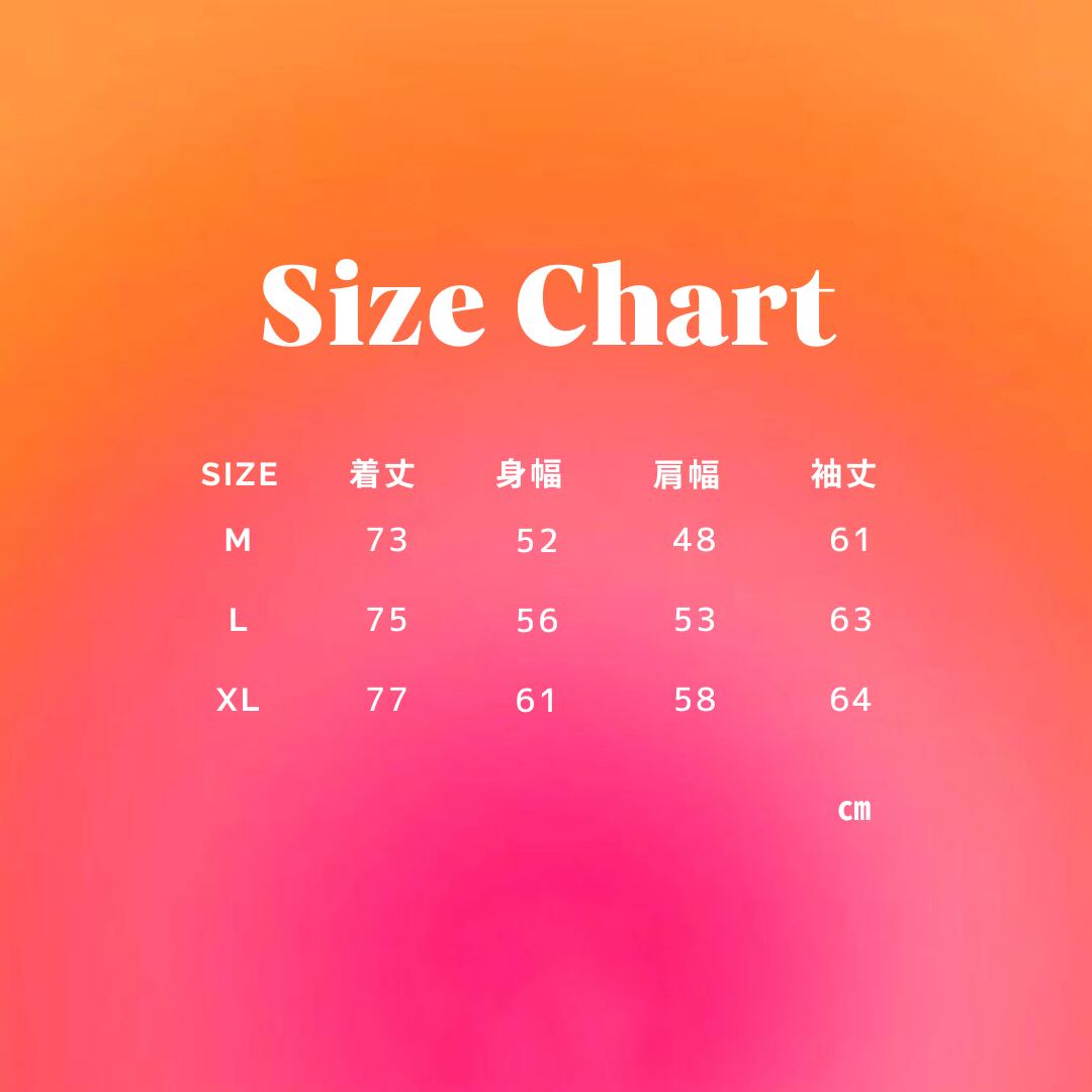 M:着丈73cm/身幅52cm/肩幅48cm/袖丈61cm